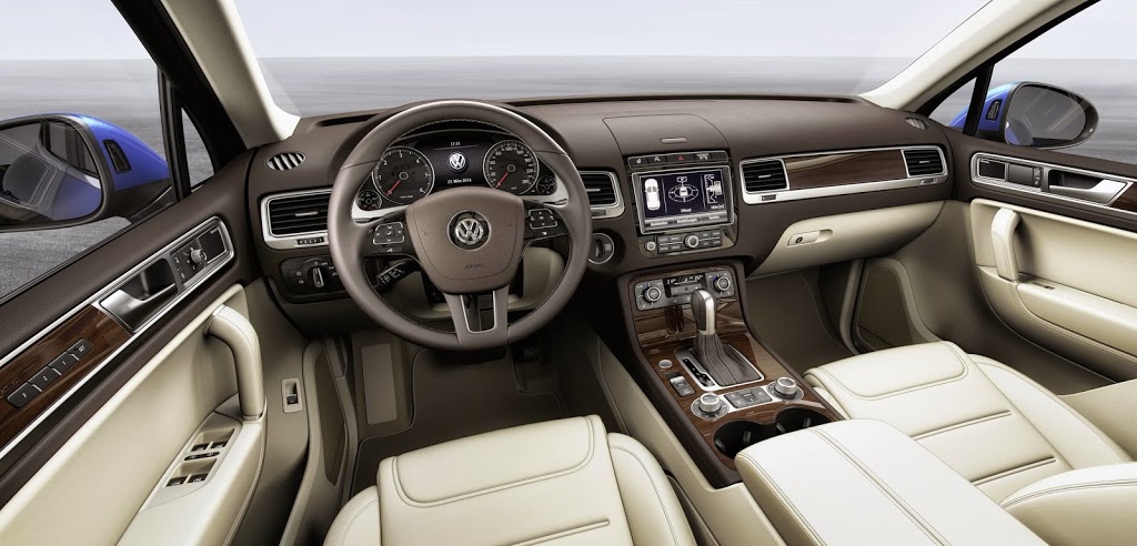 Στο εσωτερικό του Touareg, οι αλλαγές δεν είναι αρκετές, ωστόσο η ανανέωση γίνεται εύκολα αντιληπτή μέσα από τα νέα χρώματα, στα οποία διατίθενται το δέρμα που ανήκει στο βασικό εξοπλισμό. Επίσης, αλλάζει ο φωτισμός του εσωτερικού, αλλά και μερικές σχεδιαστικές λεπτομέρειες.