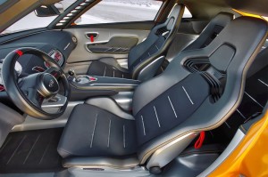 Όταν κάποιος εισέλθει στο εσωτερικό του GT4 Stinger, θα παρατηρήσει από την αρχή και για την ακρίβεια από την πρώτη του επαφή με τις χειρολαβές της πόρτας, την προσπάθεια της Kia να μειώσει το βάρος. Η επιφάνεια από τα πόδια του οδηγού έως και κάτω από τα πετάλια αλουμινίου, έχει φτιαχτεί από καουτσούκ και δεν υπάρχει πατάκι να την καλύπτει. Πίσω από το τιμόνι με την επίπεδη κάτω πλευρά σε σχήμα Dβρίσκεται ο πίνακας οργάνων ο οποίός εφοδιάζεται με LED φωτισμό. Για να δώσουν οι άνθρωποι της Kia μια αίσθηση αυτοκινήτου πίστας στο εσωτερικό δεν έχουν εφοδιάσει με κάποιο σύστημα ήχου το GT4 Stinger, δηλώνοντας πως η μουσική ξεκινά κάτω από το εμπρός καπό και τα ηχεία είναι οι εξατμίσεις.