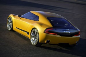 Η εκπληκτική εξωτερική εμφάνιση του νέου concept της Kia ολοκληρώνεται με το πίσω μέρος, όπου το πλάτος αυξάνεται, ώστε να καλυφθούν οι τεράστιοι τροχοί με τις ζάντες αλουμινίου 20” και τα λάστιχα της Pirelli σε διαστάσεις 275/35. Στο εσωτερικό των τροχών έχουν τοποθετηθεί τετραπίστονες δαγκάνες της Brembo με δίσκους 15”, συνδυασμός που μπορεί να προσφέρει υψηλά επίπεδα πέδησης. Τέλος ένα ακόμα στοιχείο που θα επηρεάσει θετικά τις επιδόσεις είναι οι ανεξάρτητες αναρτήσεις με τα διπλά ψαλίδια που θα χρησιμοποιηθούν. Τα πίσω φώτα, περιβάλλουν μία μαύρη επιφάνεια η οποία συνεχίζει και γίνεται ένα με το πίσω παράθυρο. Τέλος, οι δύο εξατμίσεις που βγαίνουν μέσα από τον προφυλακτήρα και βρίσκονται στις δύο άκρες του πλαισιώνουν τον πίσω διαχύτη.