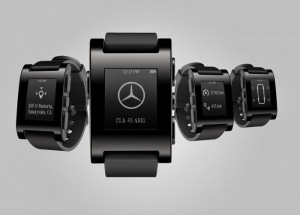 Η pebble είναι μια εταιρεία που κατασκευάζει τα smartwatches, τα οποία συνεργάζονται με τη Mercedes-Benz, και συνδέονται με το αυτοκίνητο δίνοντας πληροφορίες σχετικά με την κατάσταση του. Το smartwatch σε συνδυασμό με την εφαρμογή της γερμανικής εταιρείας Digital Drive Style επιτρέπει στο χρήστη να βλέπει πληροφορίες που αφορούν για παράδειγμα στα επίπεδα καυσίμου, την κατάσταση των κλειδαριών και την τοποθεσία του οχήματος, ρίχνοντας απλά μια ματιά στο ψηφιακό ρολόι. Επίσης, αυτό θα ειδοποιεί με δόνηση τον οδηγό εάν στο δρόμο του θα βρει κάποιο ατύχημα ή έργα, έτσι ώστε να ελαττώσει ταχύτητα. Η τεχνολογία αρνείται να σταματήσει την εξέλιξή της και οι αυτοκινητοβιομηχανίες που είναι μέρος της την ακολουθούν κατά πόδας.
