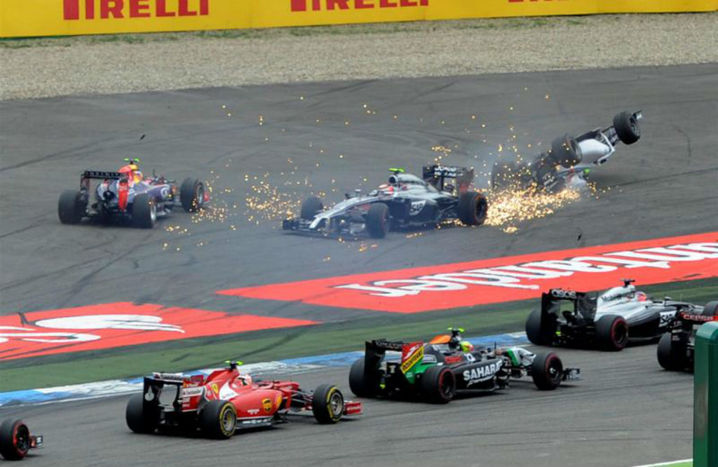 Γερμανία: Η McLaren του Kevin Magnussen έρχεται σε επαφή με τη Williams του Felipe Massa δημιουργώντας ένα από τα πιο τρομακτικά ατυχήματα της χρονιάς. Ευτυχώς για το Βραζιλιάνο πιλότο όλα πήγαν καλά.