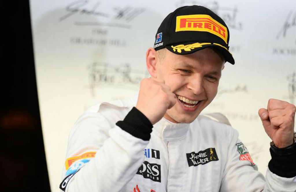 Αυστραλία: Ο rookie οδηγός της McLaren – Mercedes Kevin Magnussen πανηγυρίζει τη δεύτερη θέση που κατέλαβε στο πρώτο του αγώνα στην F1.