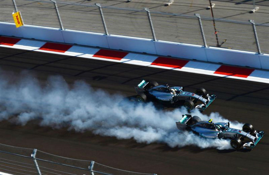 Ρωσία: Στο πρώτο αγώνα στην πίστα της Ρωσίας στο Sochi o Nico Rosberg από την πίεση μπλοκάρει τους τροχούς στην πρώτη στροφή, δίνοντας το προβάδισμα στο Lewis Hamilton, ο οποίος παίρνει άνετα τη νίκη.