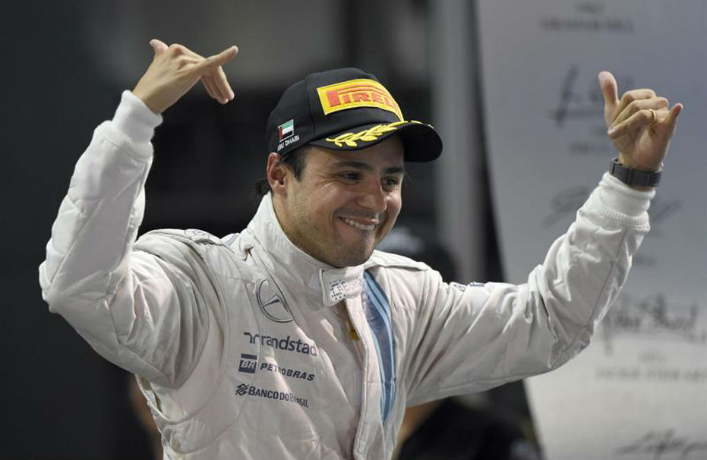 Αμπού Ντάμπι: Η Williams εξασφαλίσει το πρώτο διπλό βάθρο από το 2005, με τον Felipe Massa να πανηγυρίζει.