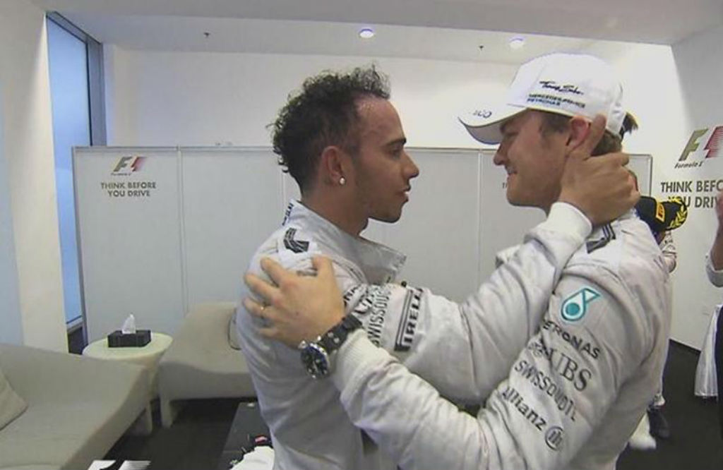 Αμπού Ντάμπι: Μια από της πιο συγκινητικές στιγμές της F1. Ο μαχητής Nico Rosberg αγκαλιάζει τον Παγκόσμιο Πρωταθλητή Lewis Hamilton δείχνοντας το πόσο καλές είναι οι σχέσεις τους παρά τις κόντρες που είχαν μέσα στη χρονιά.
