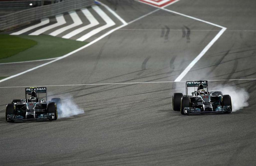 Μπαχρέιν: Lewis Hamilton και Nico Rosberg δίνουν μια τεράστια μάχη για την πρωτιά υπό το φως των προβολέων της πίστας του Sakhir.