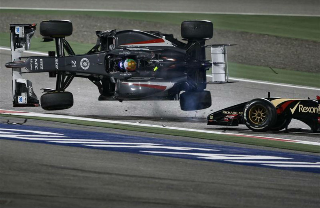 Μπαχρέιν: Ο Pastor Maldonado με τη Lotus στέλνει τον Esteban Gutierrez με τη Sauber στον αέρα μετά από επαφή που είχαν.