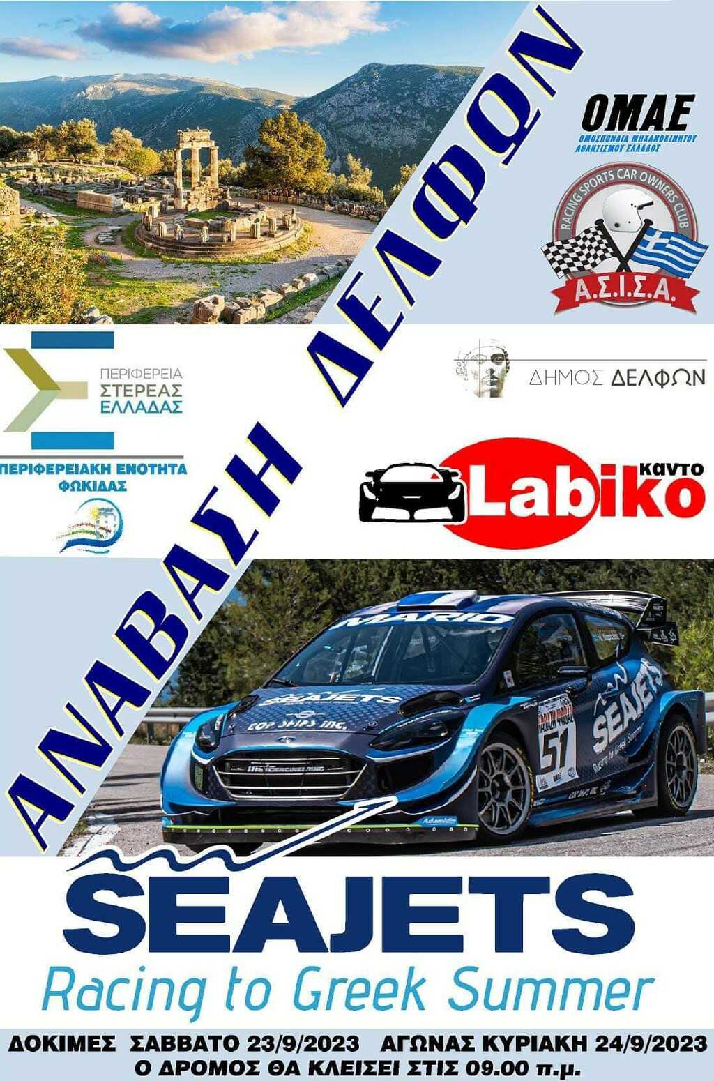H SEAJETS καθώς και η Κάντο LABIKO είναι οι χορηγοί της 1ης Ανάβασης Δελφών. Καλούμε όλους τους οδηγούς αγώνων να συμμετάσχουν και να αποτελέσουν κομμάτι της ιστορικής πρεμιέρας της Ανάβασης Δελφών. Οι ενδιαφερόμενοι μπορούν να δηλώσουν συμμετοχή στον αγώνα από τη Δευτέρα 4 Σεπτεμβρίου, έως την Παρασκευή 15 Σεπτεμβρίου στις 23:59. Οι δηλώσεις συμμετοχής γίνονται αποκλειστικά μέσω του ΣΔΔΑ της ΟΜΑΕ (www.e-omae-epa.gr).