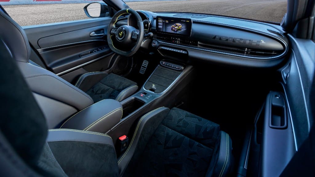 Με αφορμή την 75η επέτειό της η Abarth αποκάλυψε τρεις νέες εικόνες του ισχυρότερου μοντέλου της ιστορίας της, του 600e των 240 ίππων με την αγωνιστική τεχνογνωσία. Η μια φωτογραφία αποκαλύπτει πλήρως το εσωτερικό της έκδοσης Scorpionissima, με το λογότυπο “Abarth” να κοσμεί το δεξί μέρος του ταμπλό και το σκούρο διάκοσμο να τονίζει τη σπορ αύρα. Τα εντυπωσιακά bucket εμπρός καθίσματα και το σπορ τιμόνι είναι ντυμένα με δέρμα και Alcantara και διαθέτουν κίτρινες ραφές, ενώ στην κεντρική κονσόλα το κάλυμμα του αποθηκευτικού χώρου αναγράφει “Mind The Scorpion” ώστε να δίνει το στίγμα του σκορπιού.