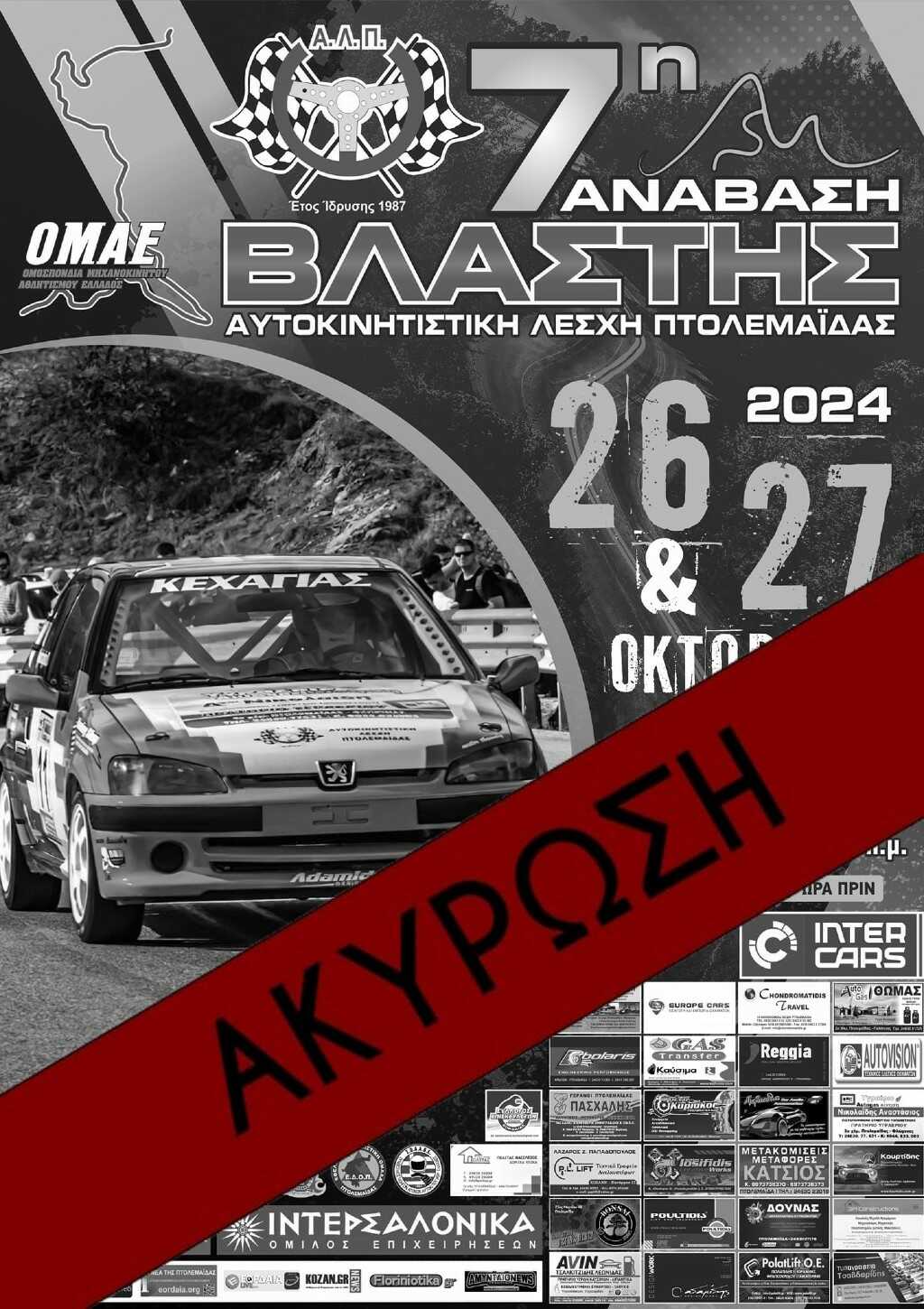 Το Διοικητικό Συμβούλιο της Αυτοκινητιστικής Λέσχης Πτολεμαΐδας αποφάσισε την ακύρωση της 7ης Ανάβασης Βλάστης 2024 που ήταν προγραμματισμένη για το Σαββατοκύριακο 26-27 Οκτωβρίου 2024.