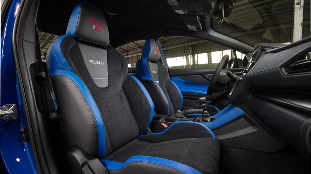 Στο εσωτερικό δεσπόζουν τα μπλε-μαύρα bucket καθίσματα της Recaro με τα λογότυπα WRX tS, ενώ υπάρχει το δερμάτινο τριάκτινο τιμόνι με τα χειριστήρια, ο δερμάτινος επιλογέας ταχυτήτων και τα πεντάλ αλουμινίου. Η μεγαλύτερη αλλαγή έρχεται όμως στον πίνακα οργάνων, ο οποίος πλέον είναι ψηφιακός μεγέθους 12,3”, ενώ συνδυάζεται με την ψηφιακή οθόνη μεγέθους 11,6”, με το σύστημα ενημέρωσης και ψυχαγωγίας. Ο οδηγός με το σύστημα Drive Mode Select μπορεί να επιλέξει ανάμεσα σε τρία προγράμματα οδήγησης που είναι τα Comfort, Normal και Sport.