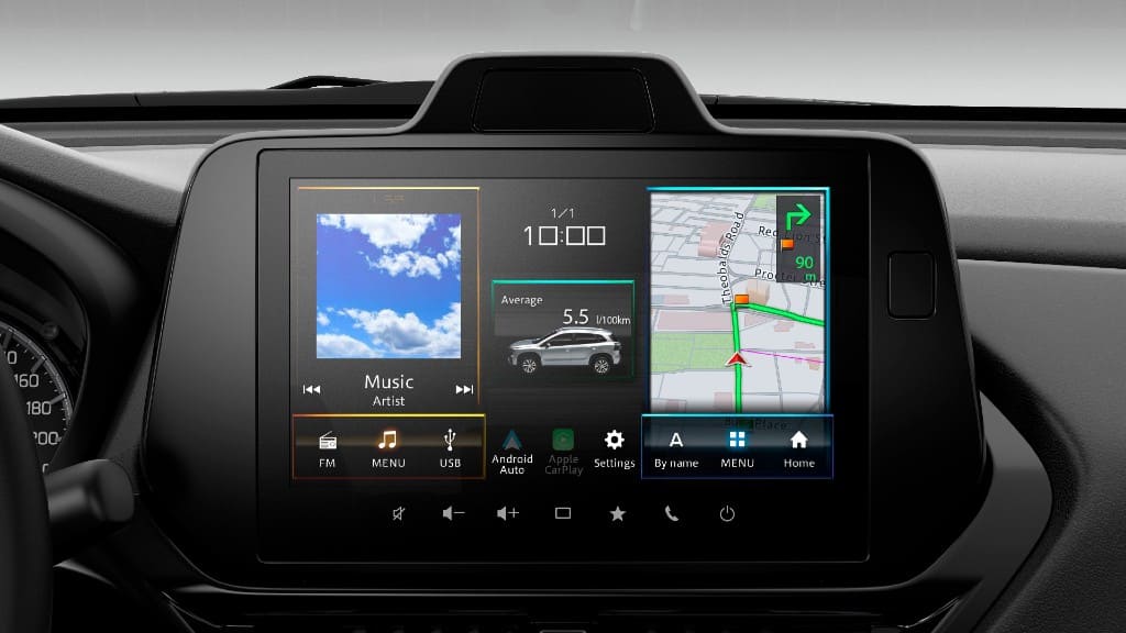 - Την οθόνη Infotainment 9” με στάνταρντ το σύστημα πλοήγησης. Το σύστημα υποστηρίζει επίσης συνδεσιμότητα smartphone μέσω USB και Wi-Fi που επιτρέπει σε οδηγό και συνοδηγό να χρησιμοποιούν ασύρματα μια ποικιλία εφαρμογών μέσω Apple CarPlay και Android Auto.