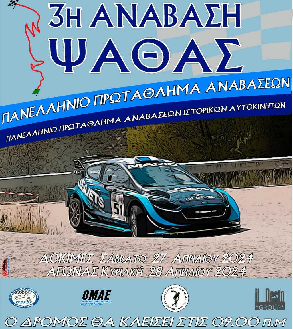 Η Ανάβαση Ψάθας εντάχθηκε για πρώτη φορά στο καλεντάρι του Πανελληνίου Πρωταθλήματος Αναβάσεων το 2022 και φέτος θα διεξαχθεί για τρίτη χρονιά. Ο δεύτερος γύρος του Πανελληνίου Πρωταθλήματος Αναβάσεων και του Πανελληνίου Πρωταθλήματος Αναβάσεων Ιστορικών Αυτοκινήτων θα διοργανωθεί από το Σωματείο “Ελληνική Λέσχη Αυτοκινήτου Δυτικής Αττικής” (ΕΛ.Λ.Α.Δ.Α.), με την υποστήριξη του Δήμου Μάνδρας-Ειδυλλίας το διήμερο 27 και 28 Απριλίου. Η πρεμιέρα του θεσμού έλαβε χώρα πριν λίγες ημέρες στη Ριτσώνα, σε έναν αγώνα, όπου το ενδιαφέρον ήταν έντονο με τις νίκες στις επιμέρους κατηγορίες να κρίνονται στις λεπτομέρειες, και κάτι ανάλογο αναμένεται να συμβεί και στην Ψάθα.
