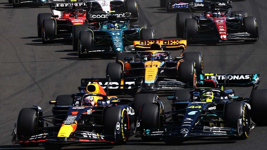 Σβήνοντας τα 5 κόκκινα φώτα ο Lewis Hamilton προσπάθησε να μείνει στην κορυφή, αλλά ο Max Verstappen είχε άλλη άποψη περνόντας στην πρώτη στροφή τον Βρετανό οδηγό της Mercedes. Ακριβώς από πίσω το ίδιο πέτυχαν και οι Norris και Piastri αφήνοντας το Βρετανό στην τέταρτη θέση. Ο Sainz και αυτός ευνοήθηκε από την εκκίνηση ανεβαίνοντας στην 6η θέση. Πιο πίσω είχαμε την καραμπόλα με τον Zhou να χτυπάει τον Ricciardo, τον Ricciardo να χτυπάει τον Ocon και αυτός με τη σειρά του χτύπησε τον Gasly.