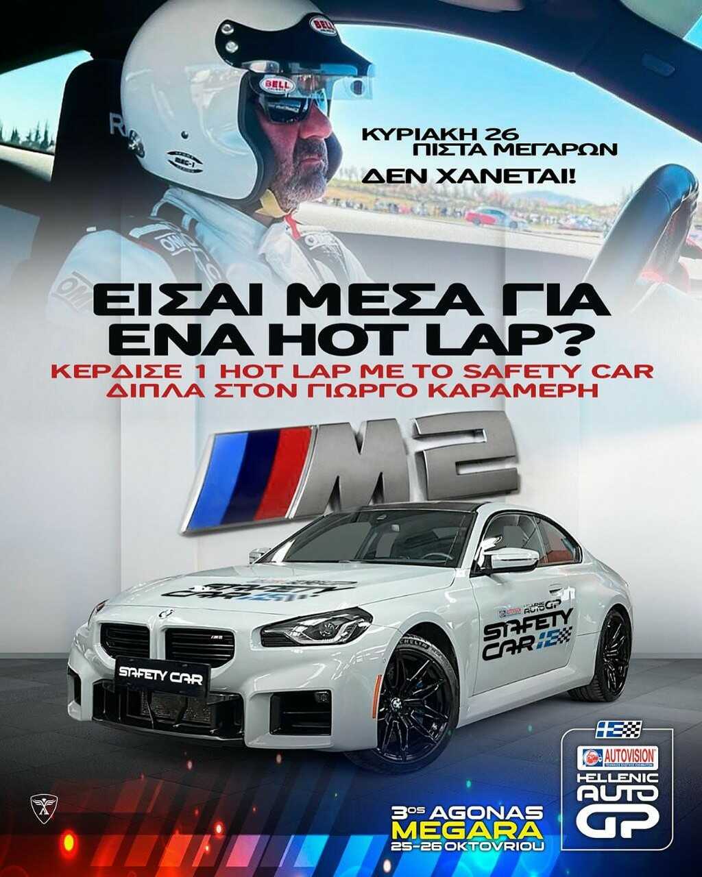Τρείς θεατές θα έχουν την ευκαιρία να καθίσουν την Κυριακή στο κάθισμα του συνοδηγού, για έναν γύρο με το Safety Car του Autovision Hellenic Auto GP στο Αυτοκινητοδρόμιο των Μεγάρων. Το Autovision Hellenic Auto GP δίνει μια μοναδική ευκαιρία σε τρείς τυχερούς θεατές να καθίσουν στο δεξί κάθισμα του BMW M2 της Sportcar Tech, που χρησιμοποιείται ως Safety Car και να ζήσουν την μοναδική εμπειρία της συνοδήγησης με τον Γιώργο Καραμέρη.