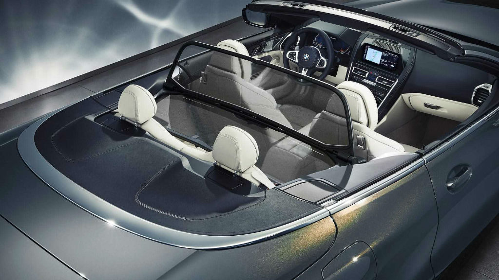 Η BMW 8 Series Convertible προσφέρεται με μια μαλακή αναδιπλούμενη οροφή, η οποία είναι διαθέσιμη σε δύο χρωματισμούς Black και Anthracite Silver, ενώ χρειάζεται μόλις 15” για να ανοίξει και να κλείσει ακόμα και με ταχύτητα 50 χλμ/ώρα. Ο χώρος αποσκευών με την κουκούλα κλειστή φτάνει τα 350 λίτρα, ενώ όταν είναι στο πίσω μέρος μειώνεται αισθητά. Η BMW έχει προσθέσει για την προστασία από τον άνεμο στις υψηλές ταχύτητες ένα πτυσσόμενο αλεξήνεμο, το οποίο όμως μπορεί να λειτουργήσει μόνο όταν δεν υπάρχουν στο πίσω μέρος επιβάτες.