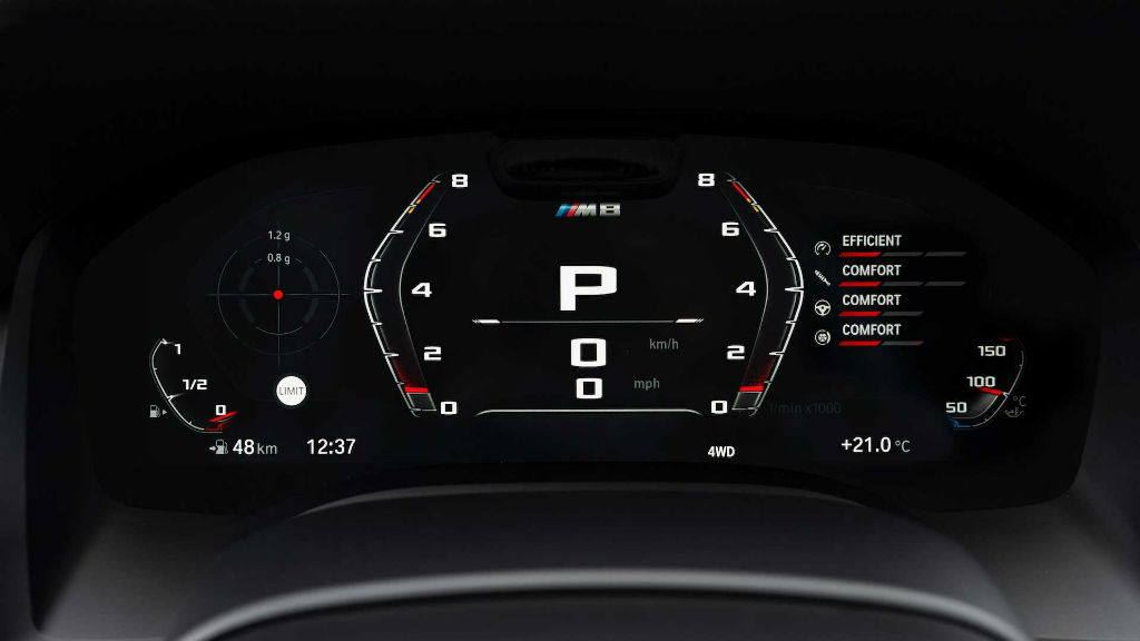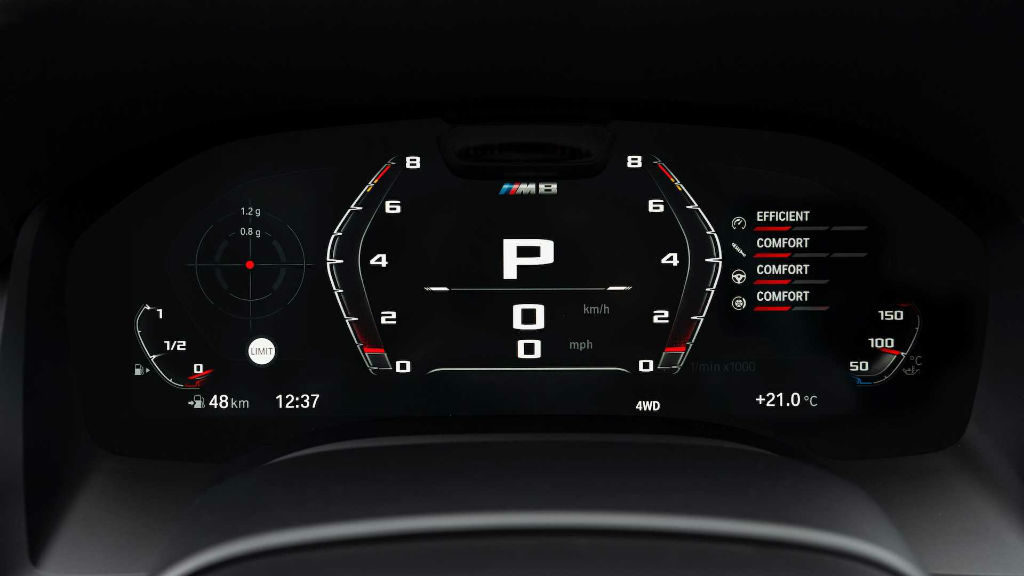 Στο εσωτερικό ξεχωρίζουν τα σπορ δερμάτινα bucket καθίσματα, καθώς και τα μαύρα και αλουμινένια διακοσμητικά. Το M τιμόνι, ο M πίνακας οργάνων, τα M Sport καθίσματα κάνουν το αυτοκίνητο πιο εντυπωσιακό, ενώ υπάρχουν δύο ψηφιακές οθόνες. Η μία είναι του πίνακα οργάνων μεγέθους 12,3”, ενώ η άλλη περιλαμβάνει το σύστημα ενημέρωσης και ψυχαγωγίας με το μέγεθος της οθόνης να είναι 10,2”.
