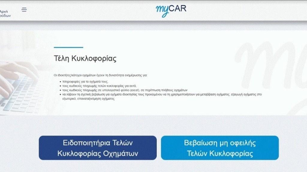 Σύμφωνα με την ΑΑΔΕ οι ιδιοκτήτες θα πρέπει να εισέλθουν στην πλατφόρμα https://mycar.aade.gov.gr, και με τα στοιχεία εισόδου του Taxisnet θα μπορούν να κατεβάσουν το ειδοποιητήριο πληρωμής των Τελών Κυκλοφορίας ή να εκτυπώσουν τη βεβαίωση μη οφειλής Τελών Κυκλοφορίας σε περίπτωση που θέλουν να μεταβιβάσουν το όχημά τους. Επιπλέον, εκεί θα υπάρχει και η ενότητα “Ψηφιακή Ακινησία/Κυκλοφορία”, από όπου θα μπορούν να δηλώσουν την ακινησία του οχήματος τους.
