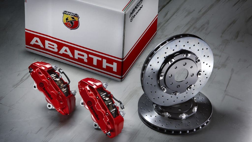 Η ιταλική μάρκα αποτελεί συνώνυμο των συστημάτων πέδησης υψηλής απόδοσης. Από την Formula 1 και τους υπόλοιπους αγώνες αυτοκινήτων, μέχρι τα αυτοκίνητα υπερύψηλών επιδόσεων, η Brembo αποτελεί την πλέον αναγνωρισμένη εταιρεία στον τομέα. Η Abarth χρησιμοποιεί σε μεγάλη κλίμακα τα συστήματα της Brembo, με αεριζόμενους δίσκους που ξεπερνούν τα 300 χιλιοστά σε διάμετρο και με διαφόρους τύπους από δαγκάνες, όπως τις τετραπίστονες που χρησιμοποιεί το συλλεκτικό νέο 695 Esseesse.