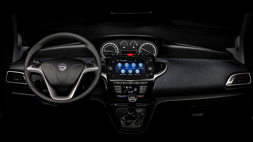 Η Lancia θέλει να δώσει μεγαλύτερο κίνητρο στους υποψήφιους αγοραστές προσφέροντας ένα νέο χρώμα στο αμάξωμα που είναι το Elegant Blue, το οποίο φέρνει τις αναμνήσεις του γνωστού Lancia Blue. Μπαίνοντας στο εσωτερικό ξεχωρίζει η οθόνη αφής μεγέθους 7”, με το σύστημα ενημέρωσης και ψυχαγωγίας, ενώ υπάρχουν και τα συστήματα Android Auto και Apple CarPlay για την πιο εύκολη σύνδεση των smartphone. Ο πίνακας οργάνων παραμένει αναλογικός με λευκά όργανα και βελόνες, ενώ βρίσκεται στο κέντρο του ταμπλό.