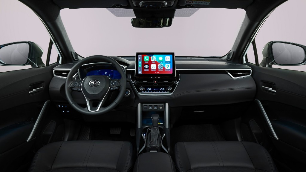 Στο εσωτερικό δεν υπάρχει καμία αλλαγή σε σχέση με την απλή Corolla. Τα δερμάτινα καθίσματα, το δερμάτινο τριάκτινο τιμόνι με τα χειριστήρια και ο δερμάτινος επιλογέας ταχυτήτων ανεβάζουν τον πήχη της πολυτέλειας. Ο ψηφιακός πίνακας οργάνων μεγέθους 12,3” και η οθόνη αφής μεγέθους 10,5”, με το σύστημα ενημέρωσης και ψυχαγωγίας κάνουν πιο εύκολη τη ζωή του οδηγού.