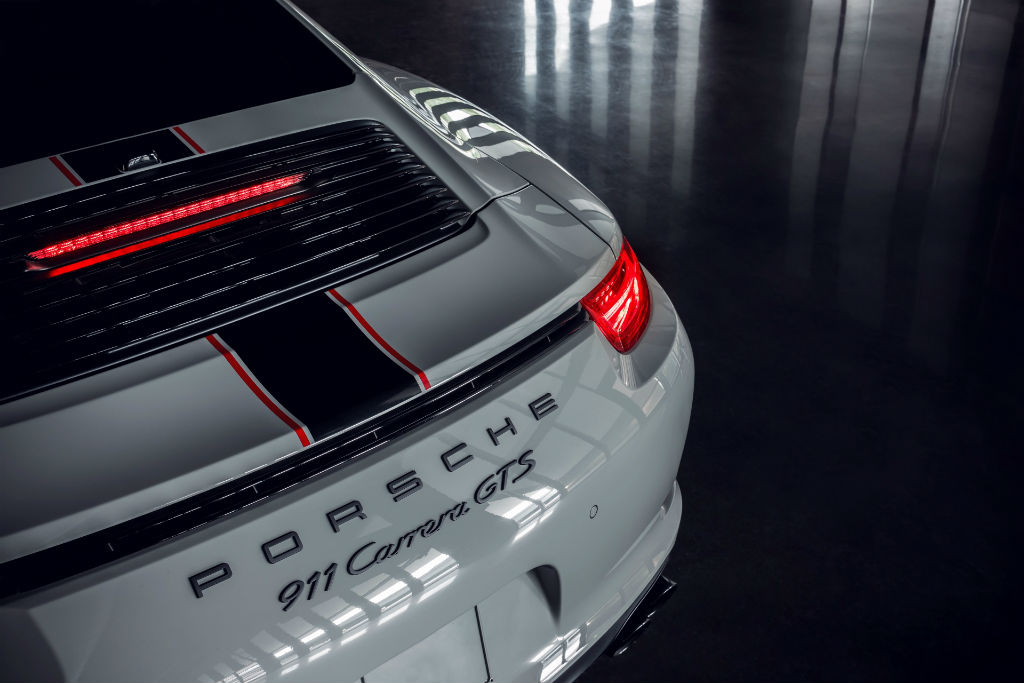 Αυτό βέβαια δεν είναι αρκετό, αφού η μοναδικότητα της 911 Carrera GTS Rennsport Reunion Edition θα πρέπει να γίνεται εύκολα αντιληπτή και στο μάτι. Η γερμανική φίρμα λοιπόν αποφάσισε να χρησιμοποιήσει για την εξωτερική εμφάνιση του επετειακού της μοντέλου, ένα συνδυασμό από μαύρο, γκρι και κόκκινο χρώμα. Συγκεκριμένα, το χρώμα Fashion Gray που καλύπτει το αμάξωμα, δημιουργεί μία εξαιρετική αντίθεση με τις κόκκινες και μαύρες λεπτομέρειες που έχουν τοποθετηθεί στο καπό, στην οροφή και στο πίσω μέρος, ενώ στα πλαϊνά με τους ίδιους χρωματισμούς έχει τοποθετηθεί το όνομα της εταιρίας. Με γυαλιστερό μαύρο χρώμα έχουν βαφτεί, τόσο οι ζάντες μεγέθους 20”, όσο και το κάτω μέρος των καθρεφτών μαζί με τη δορυφορική κεραία. Τέλος, το μαύρο επικρατεί και στο εσωτερικό των φωτιστικών σωμάτων.