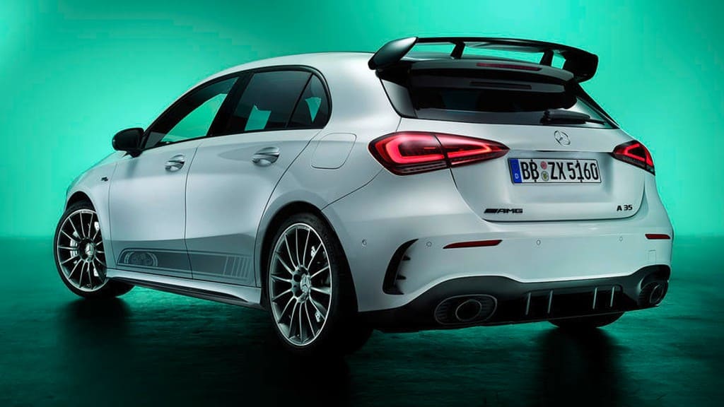Η AMG συμπληρώνει φέτος τα 55 χρόνια ζωής και για αυτό το λόγο δημιούργησε μια επετειακή έκδοση με την ονομασία Edition 55, για την AMG A35. Η συγκεκριμένη έκδοση προσφέρεται σε δύο χρώματα που είναι τα Cosmos Black Metallic και Digital White Metallic, ενώ διαθέτει λεπτομέρειες από ανθρακονήματα, αεροδυναμικά βοηθήματα, νέες εισαγωγές αέρα, διαχύτη, μαύρη πίσω αεροτομή και τη νέα διπλή απόληξη της εξάτμισης. Επιπλέον, υπάρχουν και οι ζάντες αλουμινίου μεγέθους 19”.
