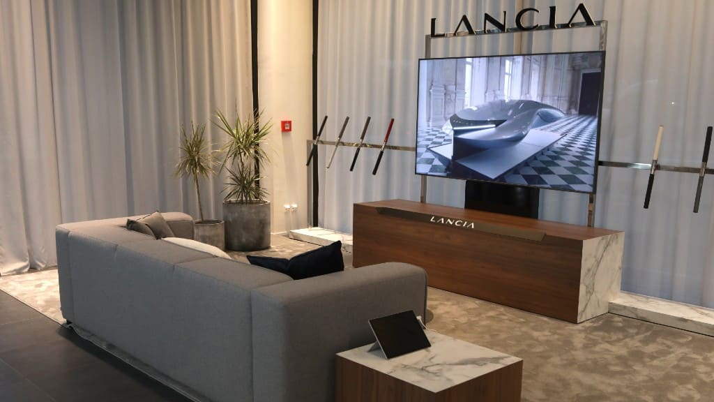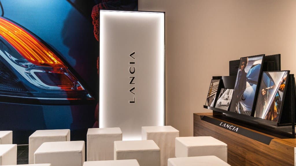 Η νέα εταιρική ταυτότητα αντανακλά του τέσσερις πυλώνες του στρατηγικού πλάνου της Lancia ποιότητα, εξηλεκτρισμός, βιωσιμότητα και ένα καινοτόμο μοντέλο πωλήσεων που θα ανταποκρίνεται στις ανάγκες κάθε πελάτη. Τα στοιχεία που χαρακτηρίζουν τη νέα εικόνα της μάρκας, όπως η γραμματοσειρά, οι μοντέρνες γραμμές και ο συνδυασμός ανοικτών και σκούρων χρωμάτων, αντλούν την έμπνευση τους από την ιταλική βιομηχανία μόδας και συνολικότερα την ιταλική αισθητική που είναι άρρηκτα συνδεδεμένη με τη Lancia. Αυτή η φιλοσοφία είναι έκδηλη τόσο στον εξωτερικό χώρο της έκθεσης, όσο και στο εσωτερικό που προσφέρει στον επισκέπτη μια σύγχρονη και ζεστή ατμόσφαιρα.