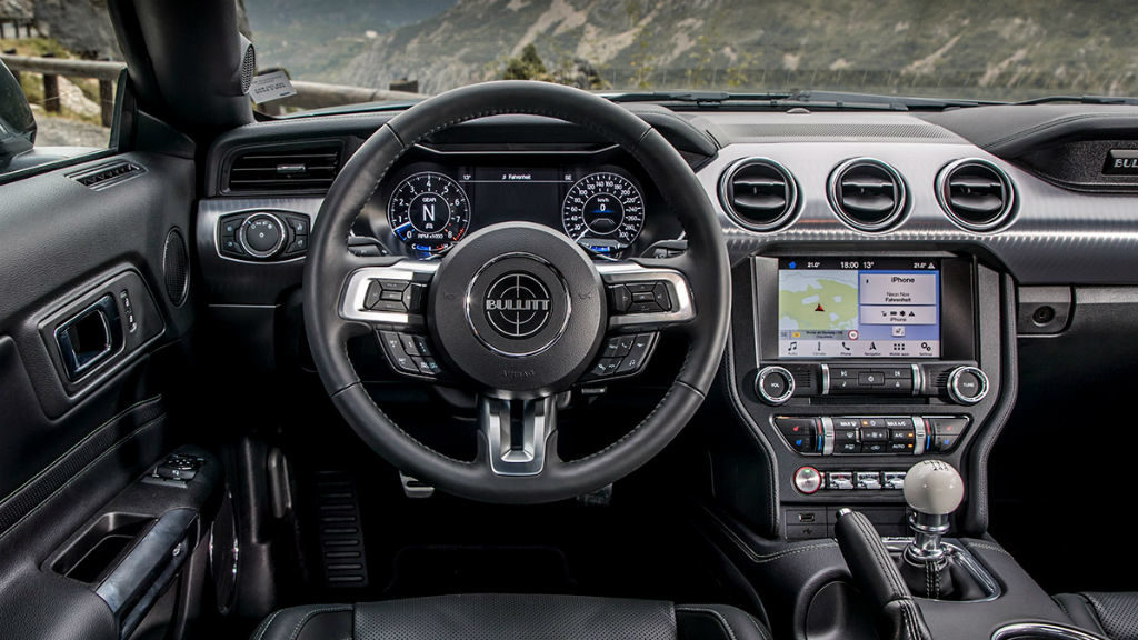 Η Mustang Bullitt η οποία είναι σχεδόν ίδια με τη Mustang GT, προσφέρει τα πακέτα εξοπλισμού Premium και Performance. Διατίθεται σε δύο χρώματα Shadow Black και Dark Highland Green, ενώ έχει νέα μάσκα, κόκκινες δαγκάνες της Brembo και ζάντες αλουμινίου μεγέθους 19”. Στο εσωτερικό δεσπόζουν τα δερμάτινα καθίσματα της Recaro, η οθόνη αφής μεγέθους 12”, με το σύστημα ενημέρωσης και ψυχαγωγίας, καθώς και το ηχοσύστημα της B&O συνολικής ισχύς 1.000 Watt.