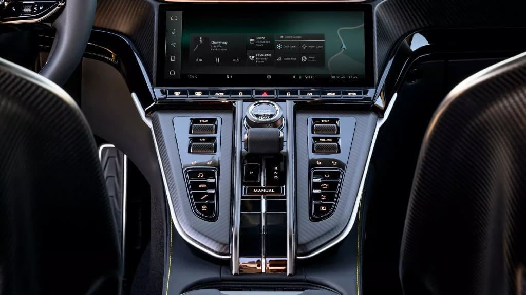 Στο εσωτερικό και εδώ υπάρχουν αλλαγές. Η πιο σημαντική είναι οι δύο ψηφιακές οθόνες, μια για τον πίνακα οργάνων και μια αφής μεγέθους 10,25”, με το σύστημα ενημέρωσης και ψυχαγωγίας. Τα δερμάτινα μαύρα bucket καθίσματα, το δερμάτινο τριάκτινο τιμόνι με τα χειριστήρια και τα πεντάλ αλουμινίου ανεβάζουν τον πήχη της πολυτέλειας. Παράλληλα, υπάρχει στο βασικό εξοπλισμό το ηχοσύστημα με τα 11 ηχεία συνολικής ισχύς 390 Watt, ενώ προαιρετικά υπάρχει το ηχοσύστημα της Bowers & Wilkins, με τα 15 ηχεία συνολικής ισχύς 1.170 Watt.