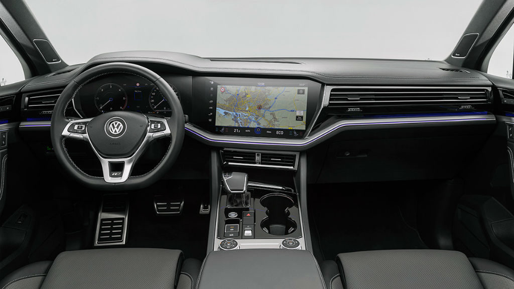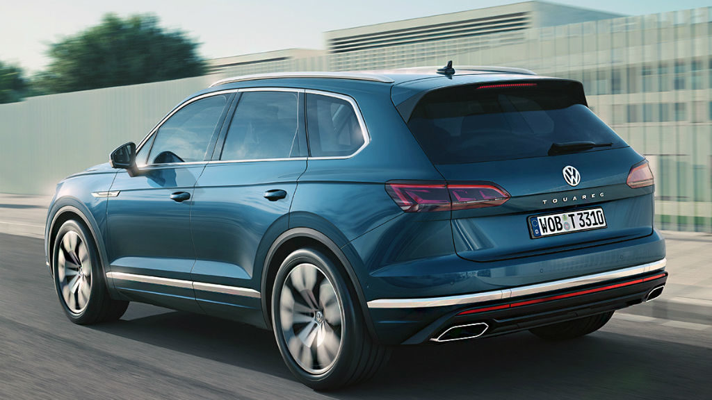 Η τεράστια μάσκα με το σήμα της Volkswagen στη μέση και τα IQ.Light – LED Matrix φωτιστικά σώματα, με τον μεγάλο προφυλακτήρα που έχει τους αεραγωγούς στο κάτω μέρος δίνουν μια άγρια ομορφιά στο Touareg. Στο πίσω μέρος δεσπόζουν τα μεγάλα φωτιστικά σώματα που ξεκινούν σχεδόν από το πλάι και παίρνουν κάποιο μέρος και στην πόρτα του πορτμπαγκάζ. Η διπλή απόληξη της εξάτμισης αριστερά και δεξιά και οι ζάντες αλουμινίου μεγέθους 18” ή 19”, το κάνουν ακόμα πιο εντυπωσιακό.