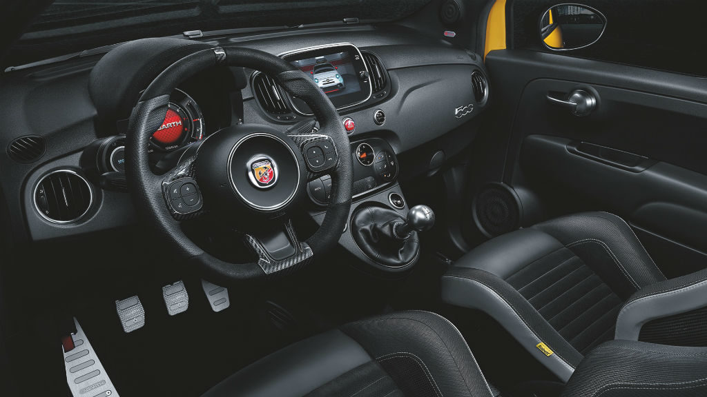 Στο 595 Pista υπάρχει το κουμπί Sport και η εξάτμιση Record Monza Attivo, καθώς και οι ζάντες αλουμινίου μεγέθους 17”, με διαστάσεις ελαστικών 205/45. Μετά ακολουθεί το 595 Turismo, το οποίο διαθέτει λεπτομέρειες χρωμίου και φιμέ πίσω τζάμια, ενώ η μέγιστη ισχύς φτάνει τους 165 ίππους. Το 595 Competizione ανεβάζει την αδρεναλίνη με τους 180 ίππους και τα 25,4 κιλά ροπής. Διαθέτει διαφορικό περιορισμένης ολίσθησης, αμορτισέρ FSD της Koni και κόκκινα φρένα της Brembo.