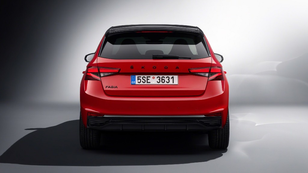 Στο πίσω μέρος δεσπόζουν και εδώ τα LED φωτιστικά σώματα, καθώς και η μαύρη αεροτομή που βρίσκεται στο τελείωμα της οροφής. Στα αρνητικά είναι η απουσία μιας σπορ εξάτμισης, όπου θα έδινε στο αυτοκίνητο άλλη χάρη. Για να κάνει αντίθεση η έκδοση Monte Carlo διαθέτει μαύρο ουρανό και μαύρα καπάκια στους καθρέπτες, ενώ ο υποψήφιος αγοραστής μπορεί να επιλέξει ανάμεσα σε 7 χρώματα, αλλά και να προσθέσει φιμέ πίσω τζάμια. Επιπλέον, μαύρο είναι και το ολογράφως “Skoda” στο πίσω μέρος, όπως και η λέξη Fabia. Το αμάξωμα ολοκληρώνεται με τις ζάντες αλουμινίου μεγέθους 16”, 17” και 18”.