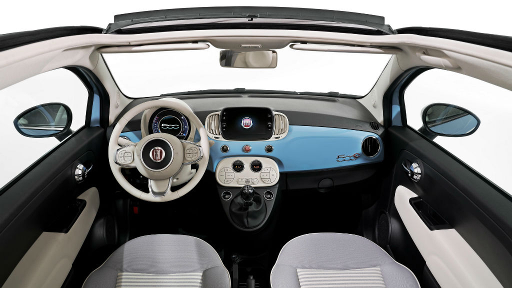 Στο εσωτερικό δεσπόζει η οθόνη αφής μεγέθους 7”, με το σύστημα ψυχαγωγίας Uconnect, το τριάκτινο τιμόνι και τα καθίσματα με τη μαλακή επένδυση από ελεφαντόδοντο. Ο χρωματισμός και εδώ είναι όπως το εξωτερικό διατηρώντας την αρμονία και εσωτερικά. Στον εξοπλισμό περιλαμβάνονται αισθητήρες βροχής και φώτων, αυτόματο σύστημα κλιματισμού και πίσω αισθητήρες στάθμευσης.