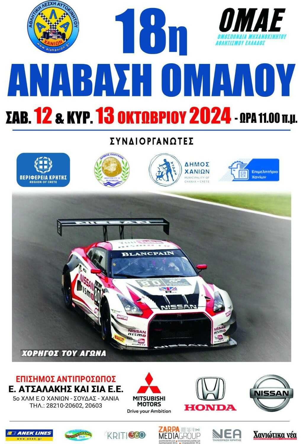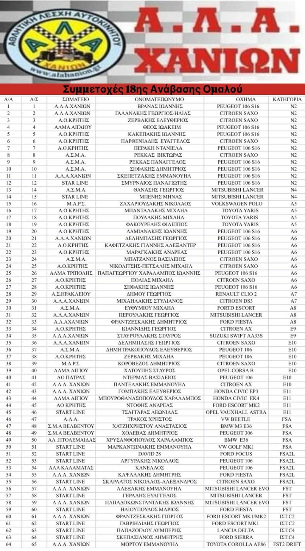 Η Α.Λ.Α.Χανίων ανακοινώνει ότι με 64 συμμετοχές θα πραγματοποιηθεί η 18η πρωταθληματική Ανάβαση Ομαλού στην περιοχή Φούρνε-Λάκκοι το Σάββατο 12 και Κυριακή 13 Οκτώβρη 2024. Οι συμμετοχές της 18ης Ανάβασης Ομαλού 2024 Είδαν το άρθρο 1.203 Σχετικά Πλοήγηση άρθρων Τα αποτελέσματα της 4ης Ανάβασης Βελβεντού 2024 44ο Rally Αχαιός 2024