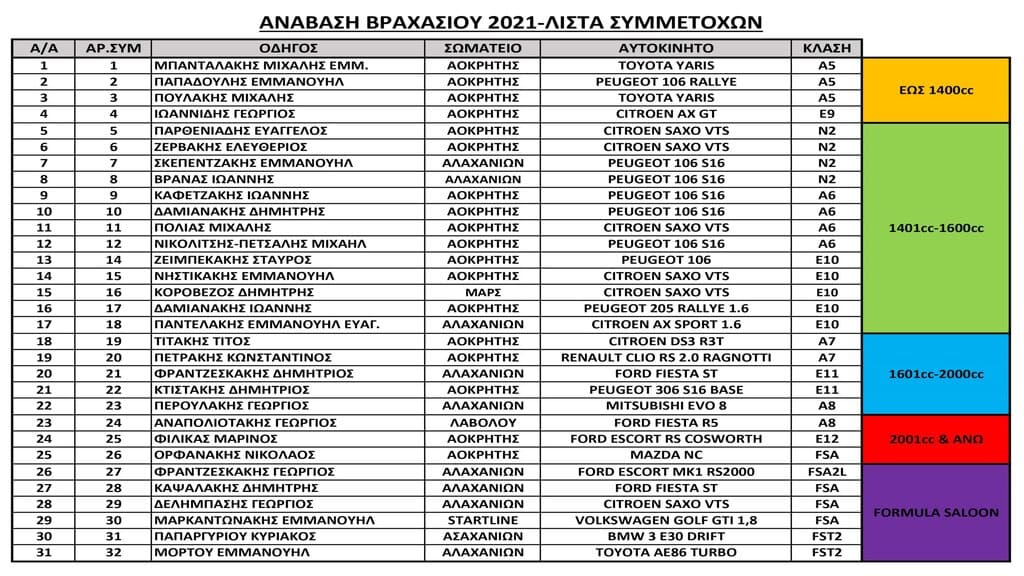 Οι συμμετοχές της 8ης Ανάβασης Βραχασίου