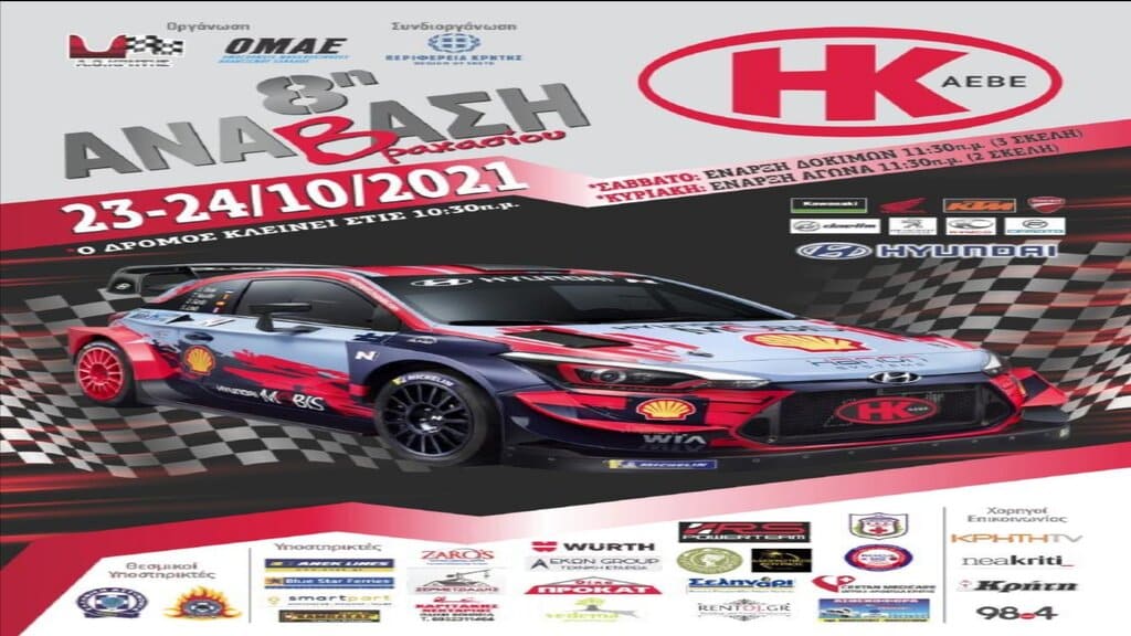Με 31 οδηγούς θα πραγματοποιηθεί ο τρίτος γύρος του Κυπέλλου Αναβάσεων Κρήτης το Σαββατοκύριακο 23 και 24 Οκτωβρίου. Η 8η Η&Κ ΑΕΒΕ Ανάβαση Βραχασίου διοργανώνεται από τον Αθλητικό Όμιλο Κρήτης σε συνδιοργάνωση με την Περιφέρεια Κρήτης και τη στήριξη του Δήμου Αγίου Νικολάου. Ο αγώνας θα διεξαχθεί και φέτος στον επαρχιακό δρόμο Σίσι-Βραχάσι, στη γνωστή και αγαπημένη διαδρομή που διέρχεται μέσα από το φαράγγι.