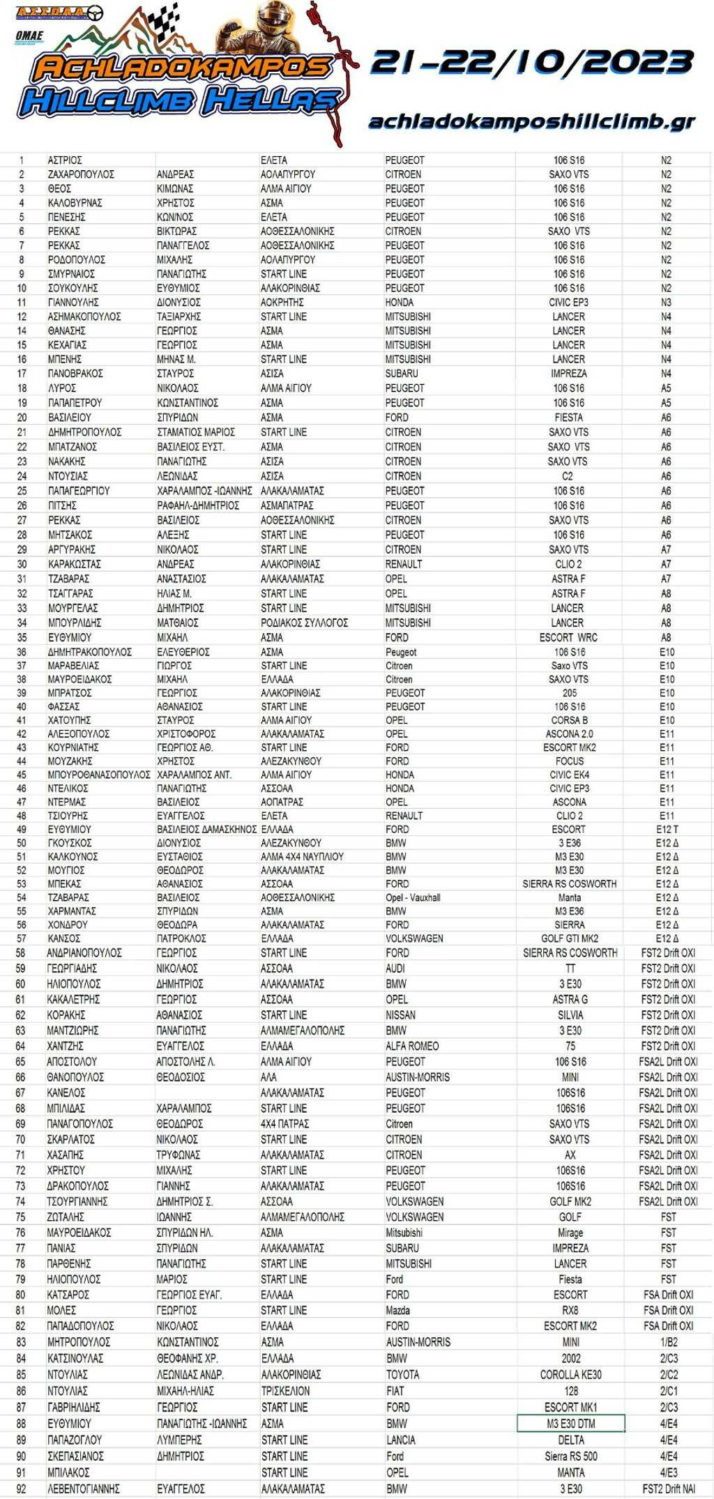 Οι συμμετοχές της Ανάβαση Αχλαδόκαμπου 2023