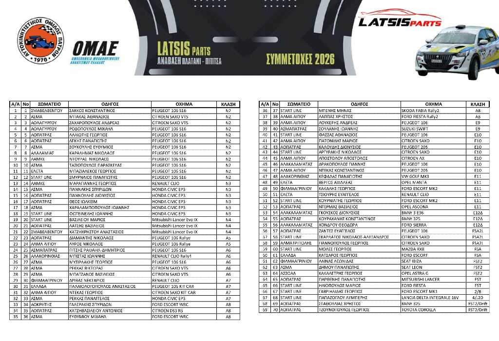 Οι συμμετοχές της Ανάβασης Πλατάνι-Πιτίτσα 2026