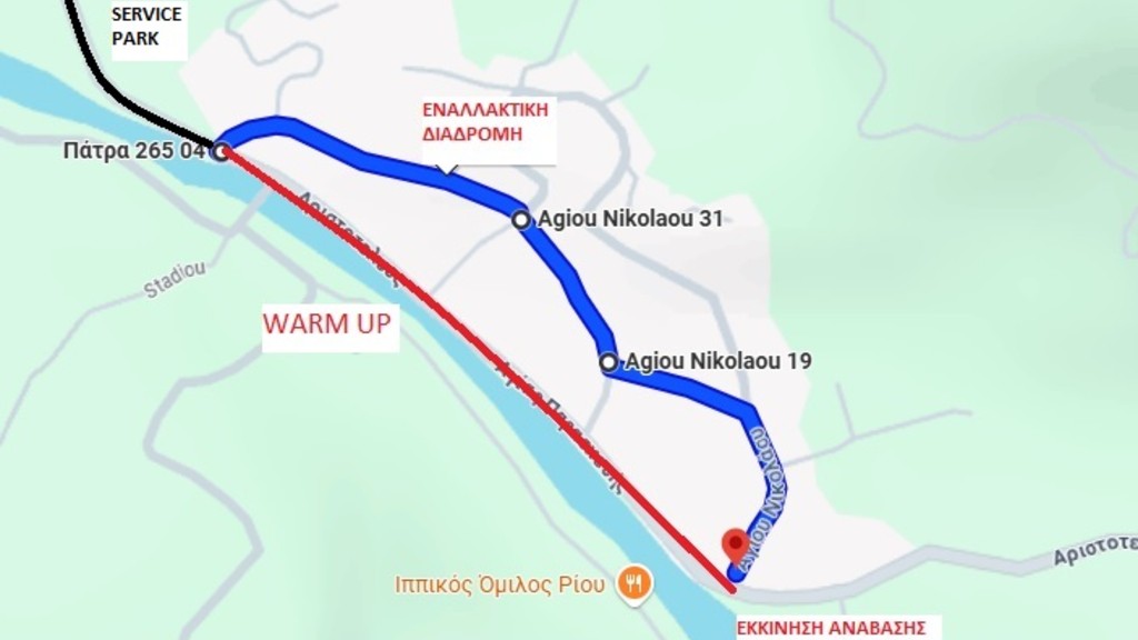 Επίσης, για λόγους ασφαλείας (απαγόρευση κυκλοφορίας στον χώρο του Warm Up), κατά την διάρκεια διεξαγωγής των Δοκιμών και του Αγώνα, για να βρεθεί όποιος θεατής θέλει στην εκκίνηση της Ανάβασης πεζός, θα πρέπει να κινηθεί από την εναλλακτική διαδρομή μέσα από το χωριό Πλατάνι, η οποία βρίσκεται στο τέλος του Service Park. Μεγάλος Χορηγός του αγώνα για άλλη μια φορά είναι η εταιρεία μεταχειρισμένων ανταλλακτικών Latsis Parts.
