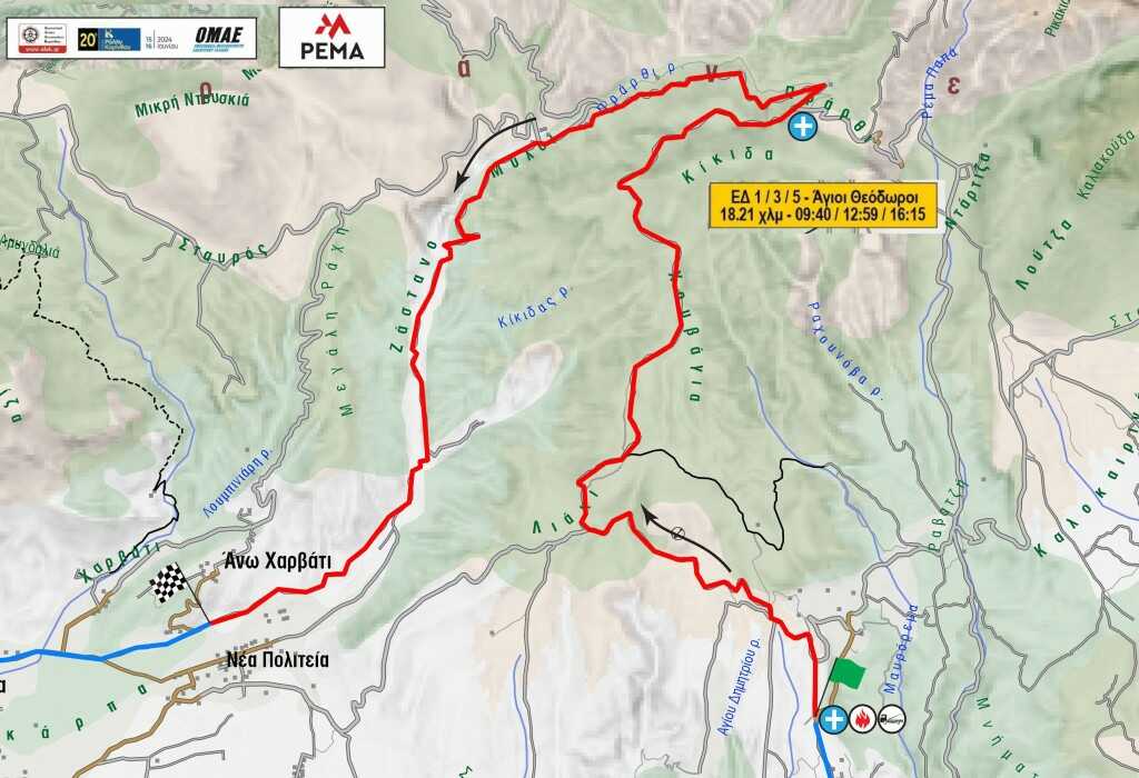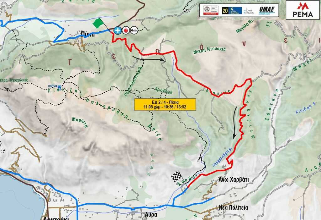 Το πρόγραμμα, στη συνέχεια, περιλαμβάνει την Ειδική Διαδρομή “Πίσια” (10:36), η οποία κόντυνε κατά 2,51 χιλιόμετρα και πλέον θα έχει μήκος 8,54 χιλιόμετρα, προτού τα αγωνιστικά επιστρέψουν στην Κόρινθο για το καθιερωμένο ημίωρο Service (11:46). Στις 12:59 και στις 13:52 είναι προγραμματισμένα τα δεύτερα περάσματα από τις Ειδικές Διαδρομές “Άγιοι Θεόδωροι” και “Πίσια”, αντίστοιχα, ενώ το πρώτο αγωνιστικό θα εισέλθει για το απογευματινό Service στις 15:02. Power Stage του αγώνα θα είναι η Ειδική Διαδρομή “Άγιοι Θεόδωροι” (16:15), η οποία θα επαναληφθεί για τρίτη φορά. Ο Τερματισμός θα πραγματοποιηθεί στην Κόρινθο στις 17:00. Η απονομή των επάθλων θα φιλοξενηθεί στο Επιμελητήριο Κορινθίας στις 19:00.