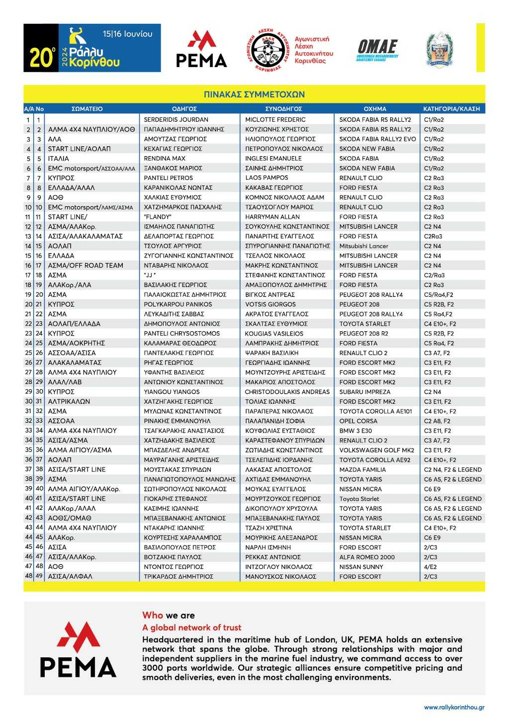 Οι συμμετοχές του 20ου Rally Κορίνθου