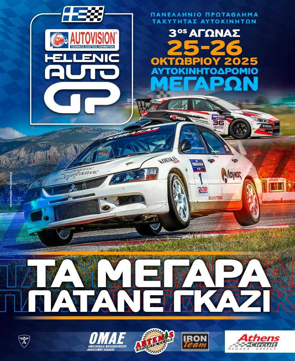 Το Autovision Hellenic Auto GP διοργανώνεται από το σωματείο Άρτεμις και την Iron Team, σύμφωνα με την προκήρυξη του Πρωταθλήματος Ταχύτητας από την Ομοσπονδία Μηχανοκίνητου Αθλητισμού Ελλάδος (Ο.Μ.Α.Ε) και με την πολύτιμη χορηγία της Autovision.