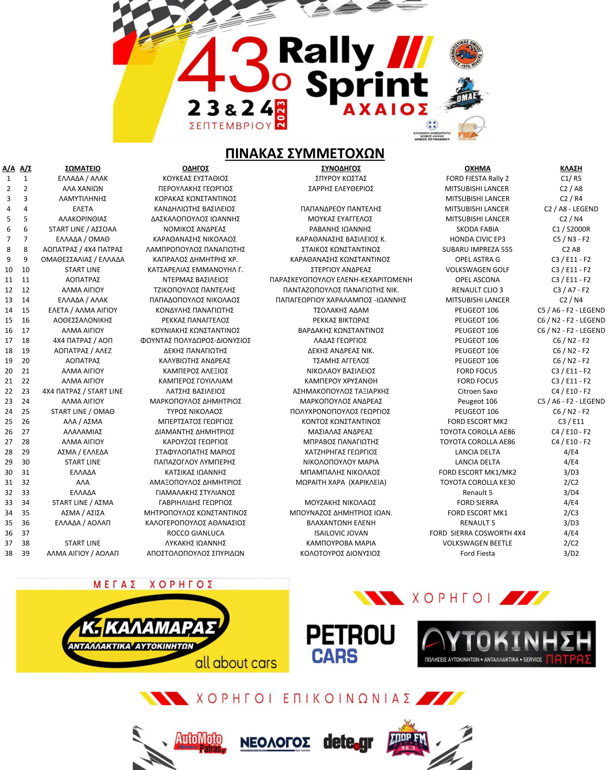 Οι συμμετοχές του 43ου Rally Αχαιός