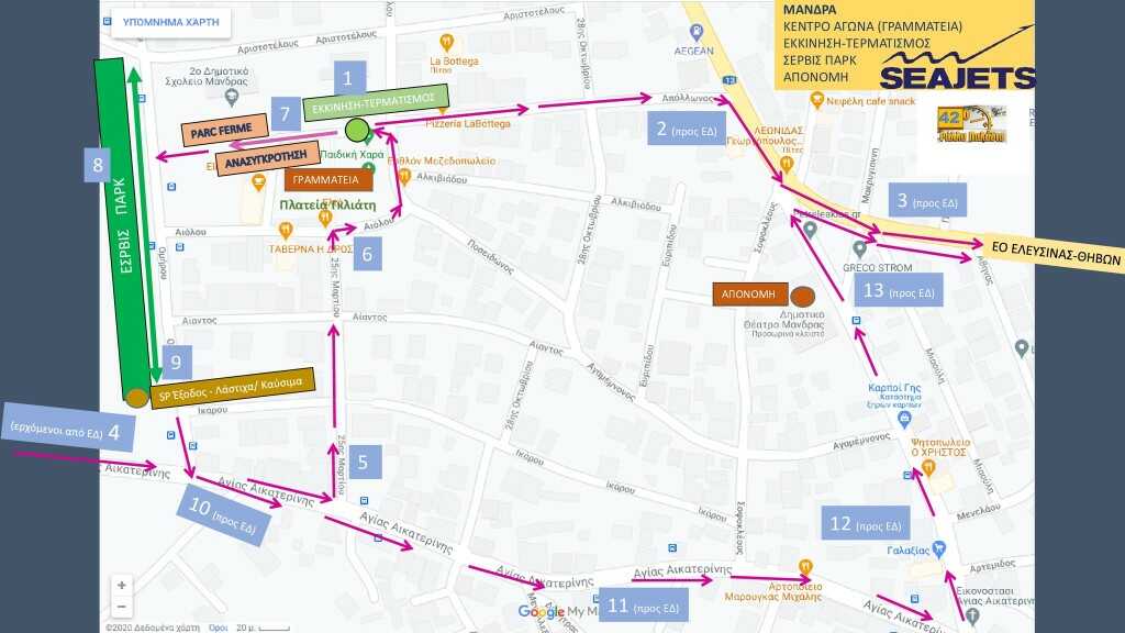 - Τερματισμός (Επιτρέπεται η Προάφιξη): Σάββατο 2 Δεκεμβρίου, ώρα 15:25, πλατεία Γκλιάτη, Μάνδρα.