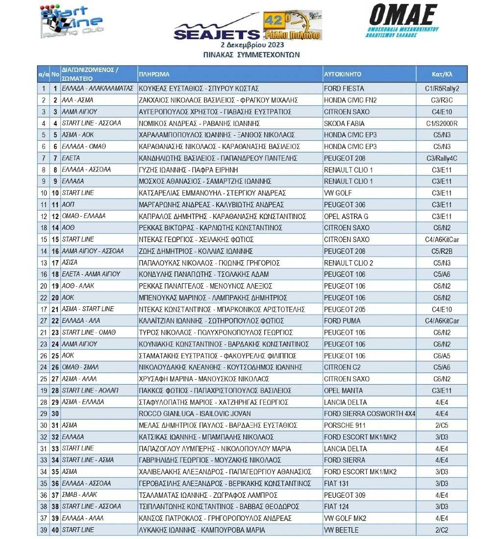 Οι συμμετοχές του Seajets 42ο Rally Παλάδιο