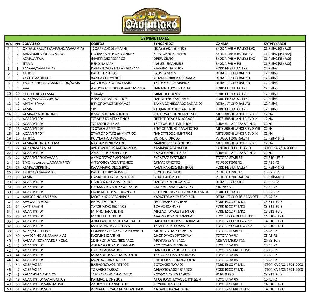 Οι συμμετοχές του 44ου Ολυμπιακού Rally 2024