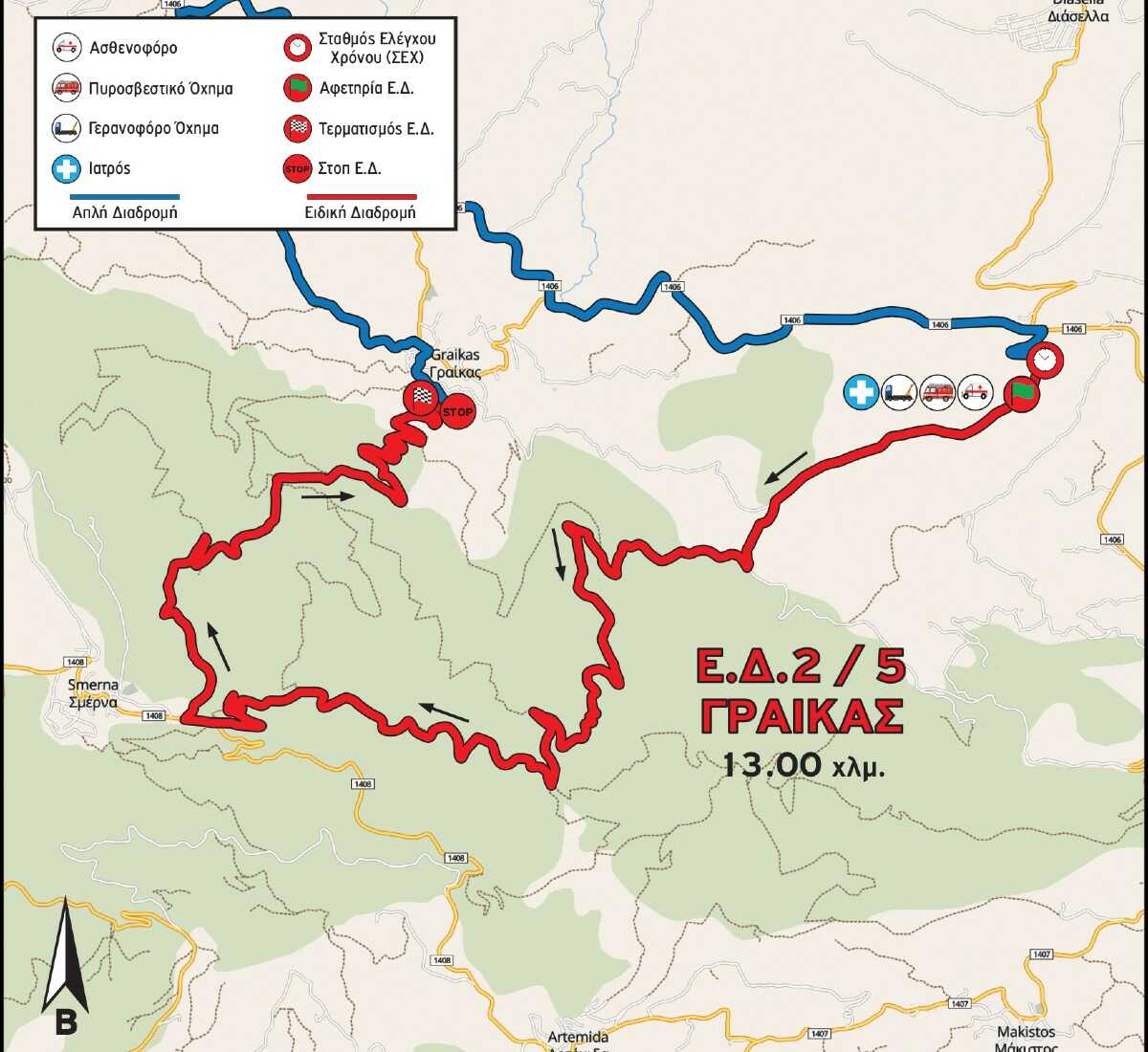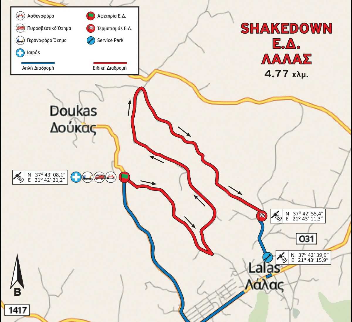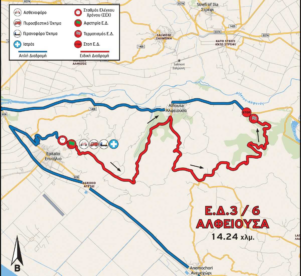 Ο αγώνας αποτελείται από 6 ειδικές διαδρομές συνολικού μήκους 79,48 αγωνιστικών χιλιομέτρων. Τα αγωνιστικά το πρωί της Κυριακής θα κατευθυνθούν στην Ειδική Διαδρομή “Φολόη” (μήκος 12,50 χιλιομέτρων), η οποία θα πραγματοποιηθεί δύο φορές, ενώ δύο φορές θα διέλθουν και από την Ειδική Διαδρομή “Γραίκα” (μήκος 13,01 χιλιόμετρα), η οποία χρησιμοποιήθηκε στο τελευταίο Rally Sprint που διοργάνωσε η ΑΟΛΑΠ τον περασμένο Νοέμβριο. Τελευταία ειδική του πρώτου loop και του αγώνα θα είναι η “Αλφειούσα” (μήκος 14,24 χιλιόμετρα), με διαφορετική χάραξη σε σχέση με τα προηγούμενα χρόνια. Τα συνολικά χιλιόμετρα του αγώνα ανέρχονται σε 368,63, με 289,15 χιλιόμετρα απλών διαδρομών.