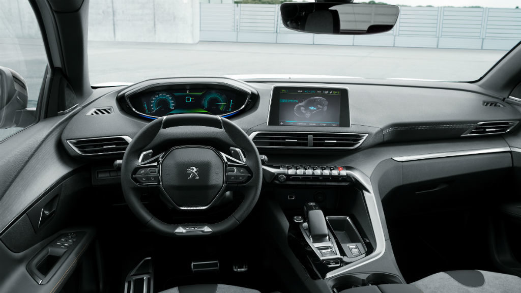 Στο εσωτερικό δεσπόζουν οι δύο οθόνες, μια με τον πίνακα οργάνων, και μια με το σύστημα ενημέρωσης και ψυχαγωγίας που περιλαμβάνει την απεικόνιση του επιπέδου της φόρτισης. Το τιμόνι αν και ολόκληρο θυμίζει κάτι από διαστημικό τιμόνι διαθέτοντας τα απαραίτητα χειριστήρια για τον εύκολο χειρισμό από τον οδηγό. Τα δερμάτινα καθίσματα από Alcantara θέλουν να τονίσουν περισσότερο την πολυτέλεια του οχήματος, αλλά το 3008 GT, το έχει πετύχει ήδη αυτό από το συμβατικό μοντέλο που κυκλοφορεί ήδη στην αγορά.