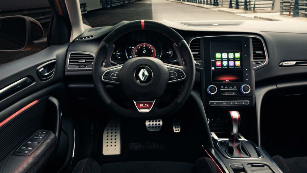 Το ολοκαίνουργιο Megane R.S. είναι το πρώτο αυτοκίνητο παραγωγής που διαθέτει το νέο σήμα Sport, το οποίο είναι κοινό και για τις δύο φίρμες Renault Sport Racing και Renault Sport Cars. Το νέο Tonic Orange χρώμα δίνει μια άλλη αίσθηση, ενώ τα bucket καθίσματα με δέρμα Alcantara και τις κόκκινες ραφές τονίζουν την πολυτέλεια του εσωτερικού.